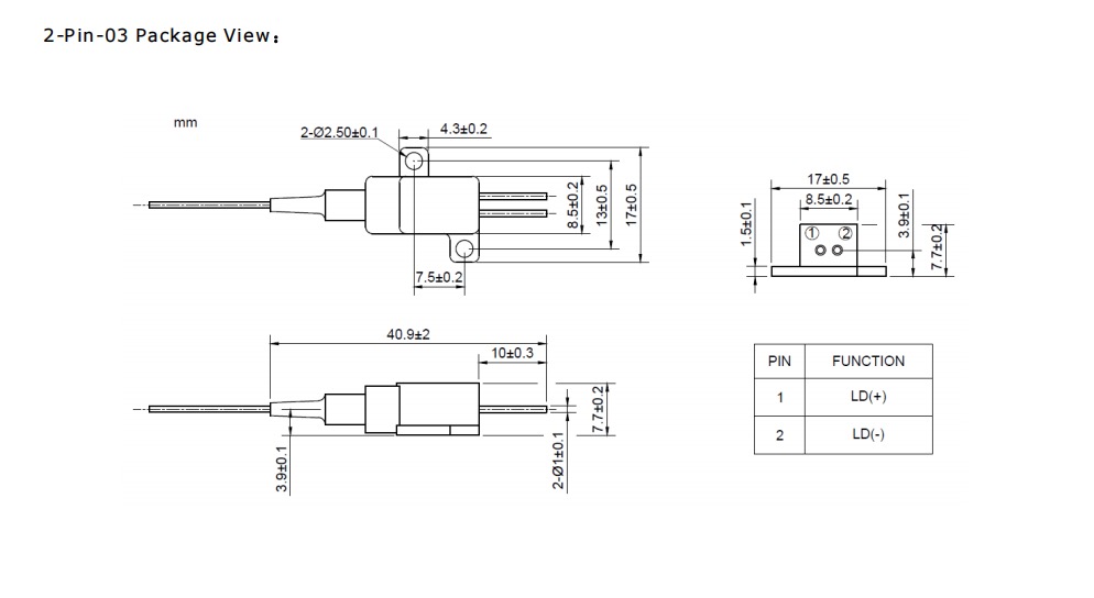 Wählen Sie basierend auf dem Wellenlänge, Ausgangsleistung und Glasfaserstecker (z. B. SMA905) benötigen. Bitte teilen Sie uns mit, wenn Sie eine spezielle Modulation benötigen.