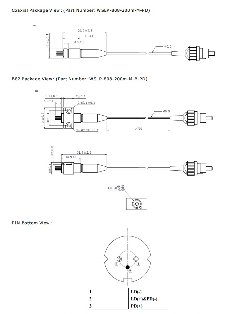 Wählen Sie basierend auf dem Wellenlänge, Ausgangsleistung und Glasfaserstecker (z. B. SMA905) benötigen. Bitte teilen Sie uns mit, wenn Sie eine spezielle Modulation benötigen.