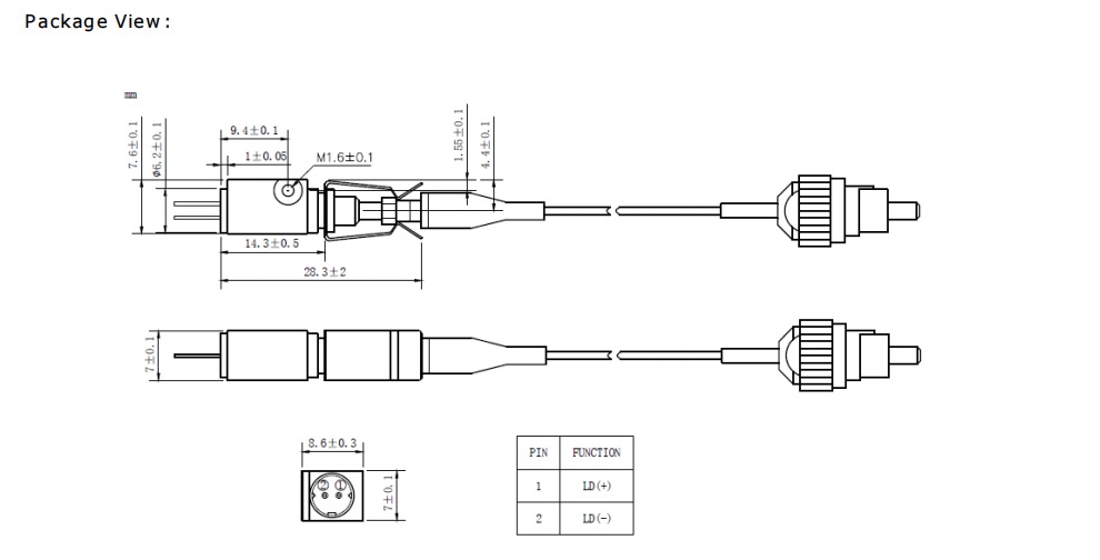 Product Drawing of 405nm 200mW 50um Multi-mode Fiber Coupled LD Module