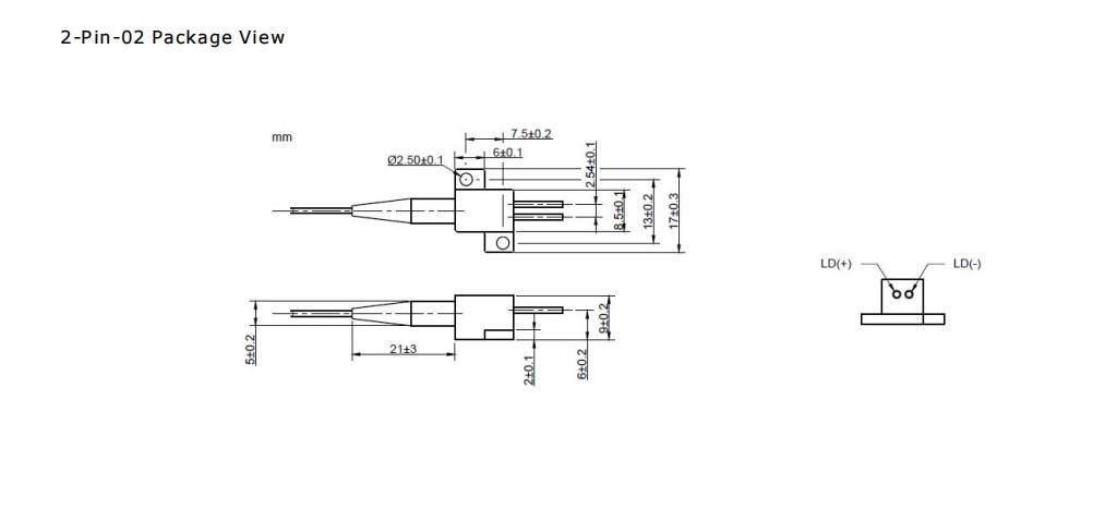 Dibujo del producto del módulo LD acoplado a fibra multimodo de 660 nm, 800 mW y 50 um.