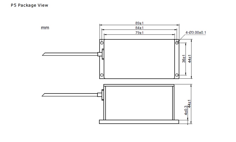 Dessin technique du module laser à diode bleue haute puissance à fibre optique pigtailée de 525 nm, 5 W et 200 µm