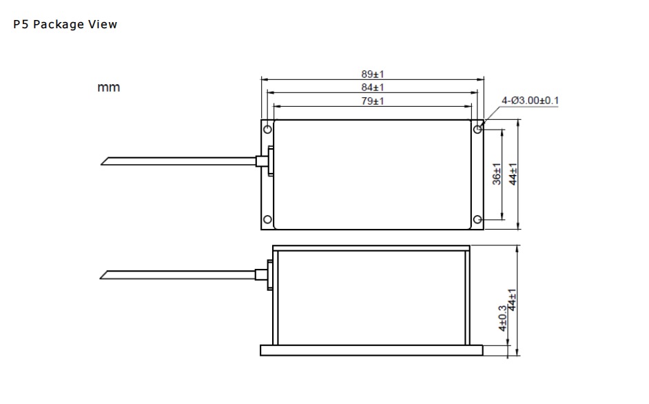 Dessin technique du module laser à diode bleue haute puissance à fibre optique pigtailée de 465 nm, 15 W et 400 µm