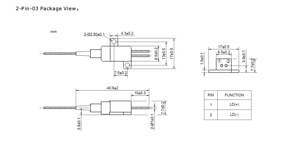 Product Drawing of 830nm 1W 50um Multi-mode Fiber Coupled LD Module
