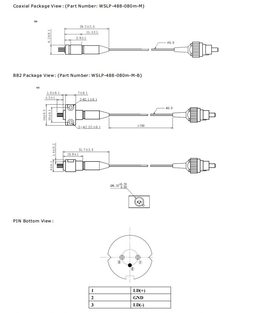 Selezionare in base al lunghezza d'onda, potenza di uscita e connettore in fibra ottica (ad es. SMA905) di cui avete bisogno. Vi preghiamo di comunicarci se avete bisogno di una modulazione speciale.