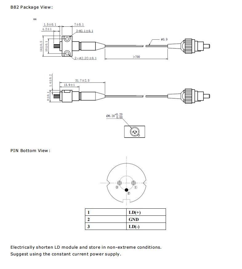 以下に基づいて選択してください 波長、出力電力、および光ファイバーコネクタ (例:SMA905) 必要なものを明記してください。特別な変調が必要な場合はお知らせください。.