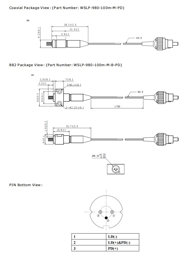 以下に基づいて選択してください 波長、出力電力、および光ファイバーコネクタ (例:SMA905) 必要なものを明記してください。特別な変調が必要な場合はお知らせください。.