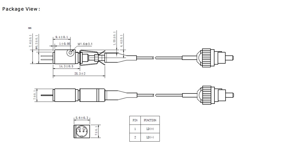Product Drawing of 395nm 150mW 105um MMF Pigtailed Diode Laser Module