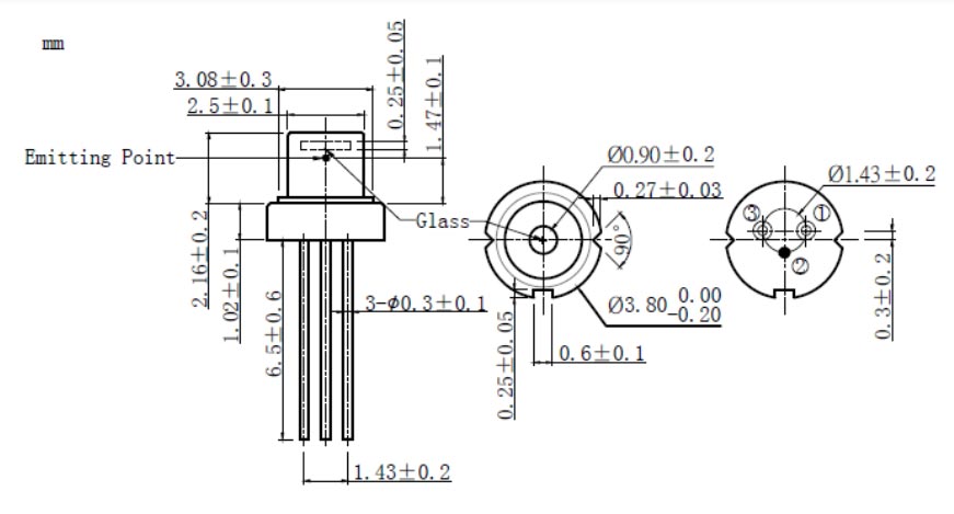 Product Drawing of 405nm 200mW SM Laser Diode with 3.8mm Package