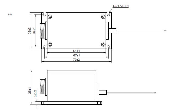 Product Drawing of 445nm 520nm 635nm 785nm 20mW 4-Wavelength Single Mode Fiber Coupled Laser Diode Module