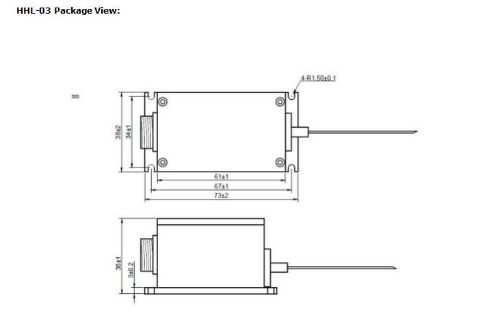 Product Drawing of 445nm 520nm 635nm 850nm 50mW 4-Wavelength 105um Fiber Coupled Laser Diode Module