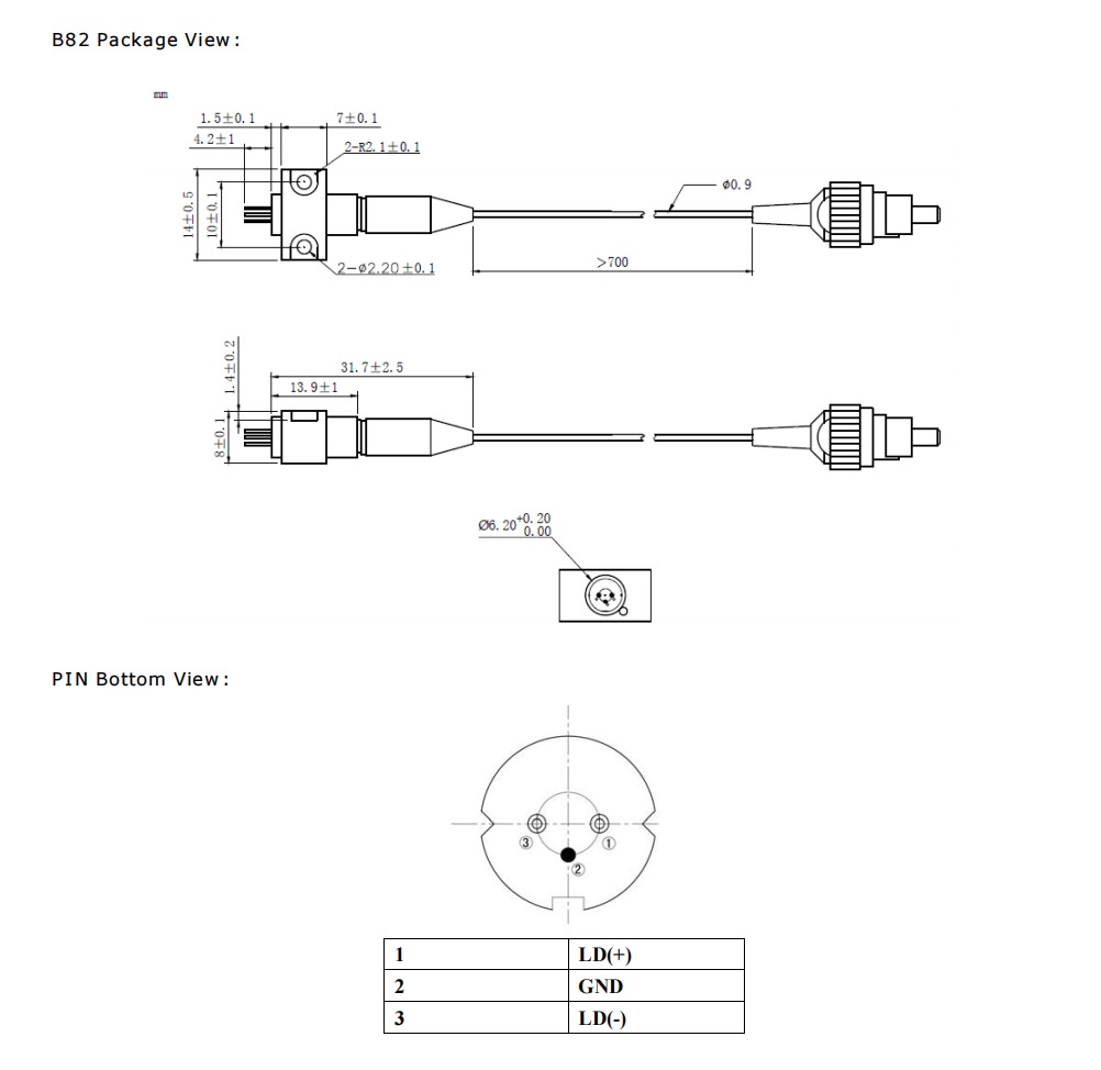 Product Drawing of 635nm400mW 105um Fiber Coupled Laser Diode Module