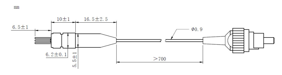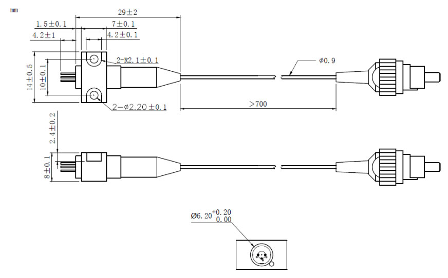 Product Drawing of 650nm 20mW 9um SM Fiber Coupled Laser Diode Module