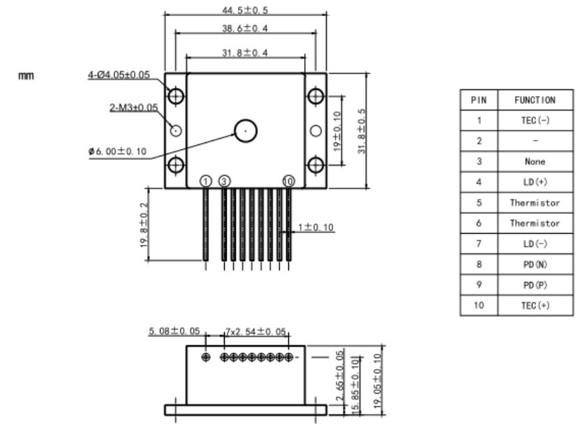 Product Drawing of 808nm 10W 9-Pin Window Package Laser Diode