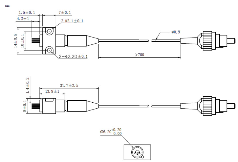 Product Drawing of 820nm 30mW Polarization Maintaining Pigtailed Laser Diode