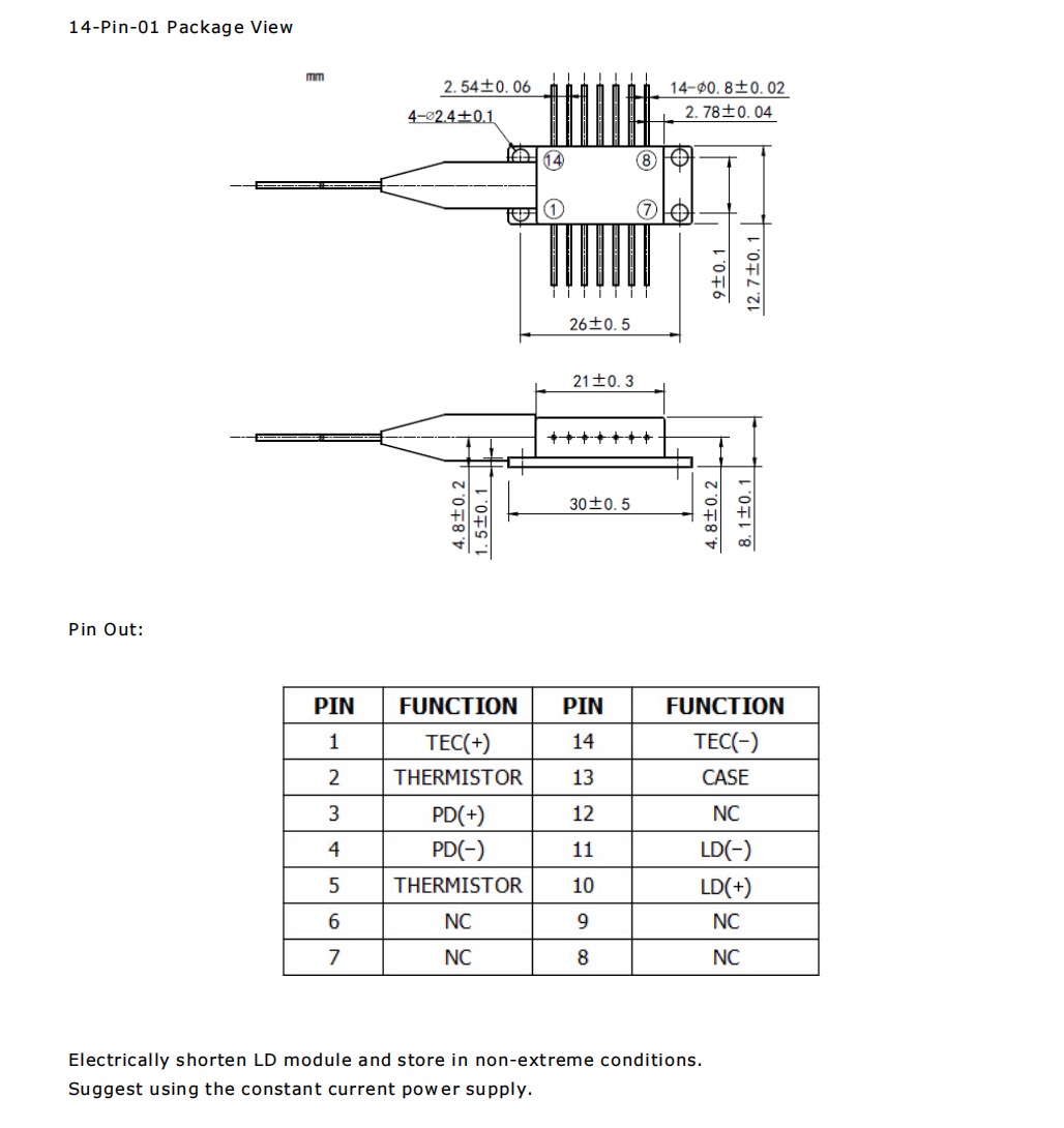 Product Parameter of 880nm2W with TEC 14-Pin Butterfly Fiber Coupled Laser Diode Module