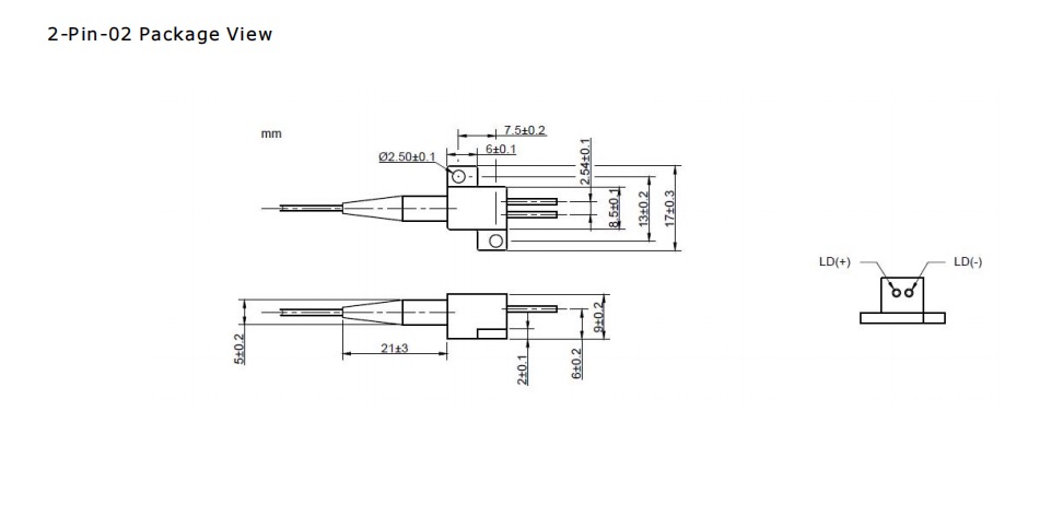 Product Drawing of 660nm 800mW 105um MMF Pigtailed Diode Laser Module