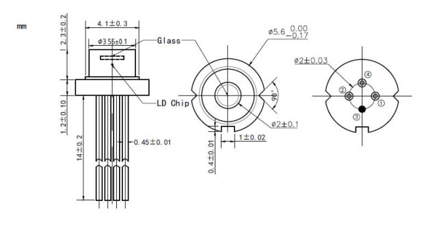 Desenho do produto do díodo laser DFB de janela plana de 1550 nm e 20 mW