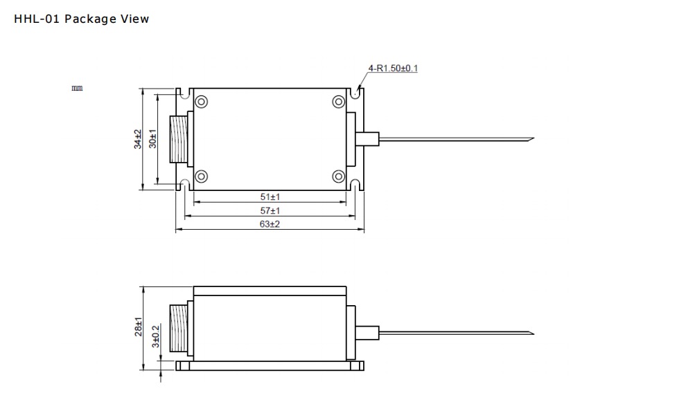 Чертеж продукта 400 нм 400 мВт с модулем волоконно-связанного лазерного диода с TE-охладителем