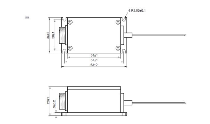 Чертеж продукта 520 нм 635 нм 10 мВт 2-длинноволновый 105 мкм волоконно-связанный лазерный диодный модуль