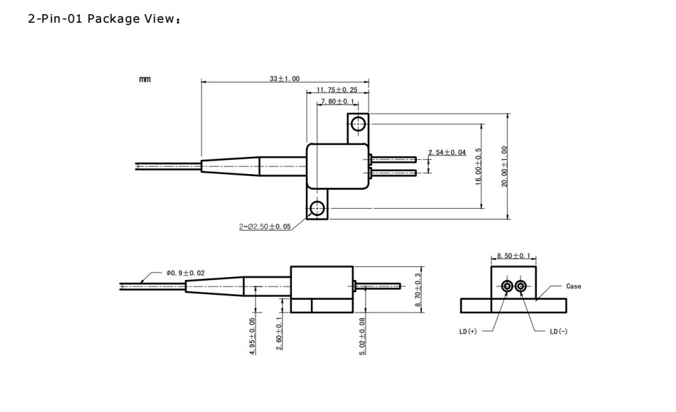 Чертеж продукта 770 нм 3 Вт 105 мкм MMF диодный лазерный модуль с пигтейлом