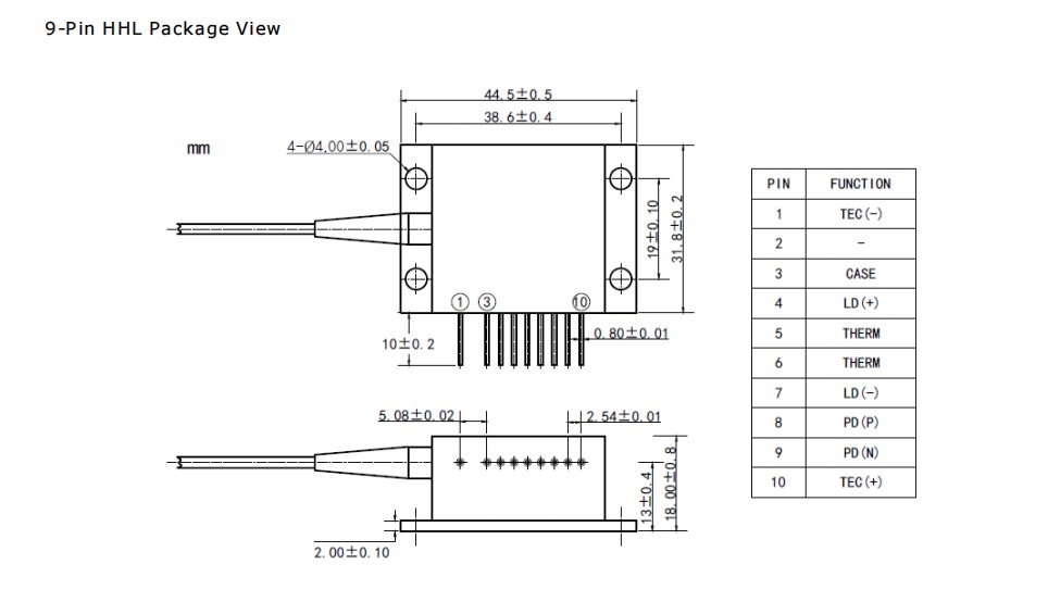 Чертеж продукта 770 нм 3 Вт 9-контактный с модулем лазерного диода с волоконной связью TEC