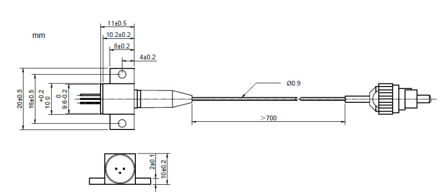 Чертеж продукта 808 нм 15 мВт модуля лазерного диода с волоконной связью, поддерживающего поляризацию